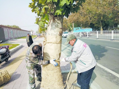園林處對部分行道樹采取了纏草繩等防護(hù)技術(shù)措施
