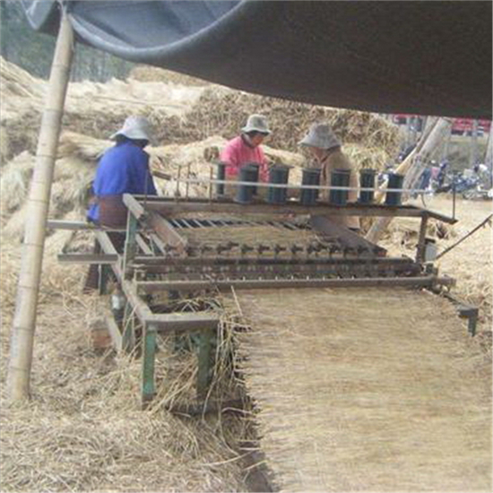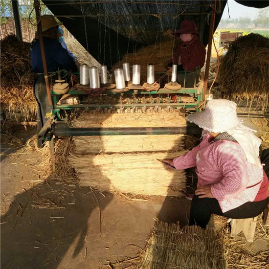 草簾。那臺(tái)機(jī)器近2米寬,半人高,6個(gè)婦女操作,前面4個(gè),后面2個(gè),前面的人續(xù)草,后面的人把織出來(lái)的