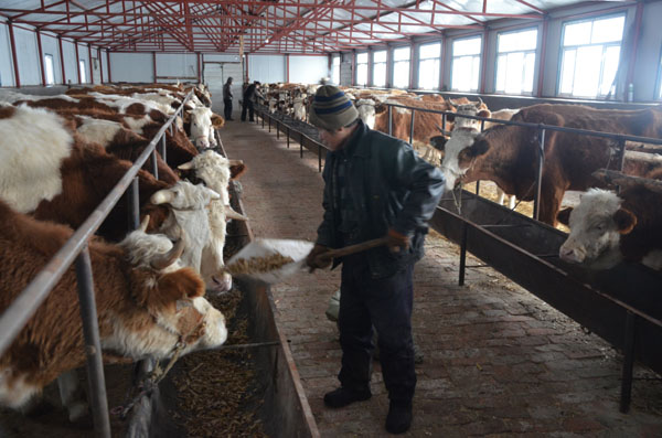 豐收鄉(xiāng)豐年村靳永發(fā)經(jīng)營(yíng)企業(yè)多年,2013年,投資400萬(wàn)元建立養(yǎng)殖場(chǎng),開(kāi)始肉牛養(yǎng)殖。養(yǎng)殖場(chǎng)占地面積3400平方米,牛舍2000多平方米。他在不斷改良品種的基礎(chǔ)上,對(duì)飼料進(jìn)行科學(xué)配比,使肉牛出欄快、肉質(zhì)好,深得大公司的青睞。目前,存欄肉牛175頭,年出欄育肥牛在40頭以上,獲利30萬(wàn)元。