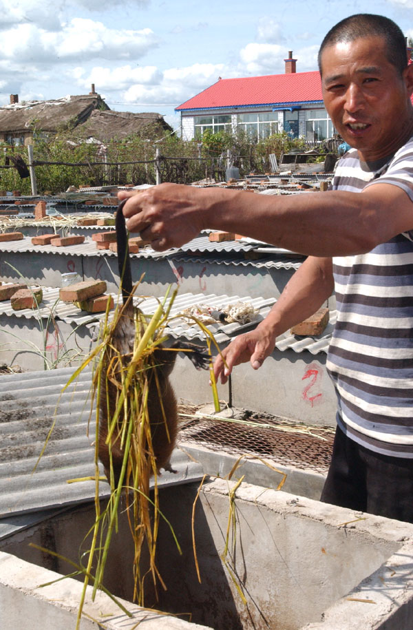 在發(fā)展鄉(xiāng)有這樣一位普普通通的農(nóng)民,他靠著10多年來(lái)的勤奮和執(zhí)著,成為遠(yuǎn)近聞名的麝鼠養(yǎng)殖示范戶(hù),并無(wú)私地將養(yǎng)殖麝鼠的經(jīng)驗(yàn)介紹給鄰里鄉(xiāng)親,成為致富路上的領(lǐng)頭雁。他就是今年已經(jīng)78歲的發(fā)源村農(nóng)民李昌強(qiáng)。從2003年開(kāi)始養(yǎng)殖麝鼠以來(lái),李昌強(qiáng)邊養(yǎng)殖邊總結(jié),終于摸索出適合自己的麝鼠養(yǎng)殖方法?,F(xiàn)已建設(shè)鼠舍400間,577.5平方米,存欄種鼠400對(duì),年繁育麝鼠600對(duì),提取麝香1200克,實(shí)現(xiàn)純收入10多萬(wàn)元。