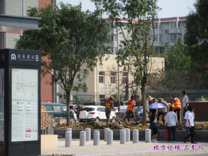 天津北方網(wǎng)訊:據(jù)前沿網(wǎng)友小編“三秦人”介紹,22日中午,網(wǎng)友小編路過位于育梁道與迎風道之間的紅旗南路路段,看到馬路中央的隔離線,已經(jīng)進行了升級改造,即將用大型花崗石,壘砌成為中央隔離島式美麗的花壇。與此同時,市園林綠化部門的農(nóng)民工師傅們,正在六號線迎風道地鐵站C、B兩個出入口與車站通風井一帶地域,進行機械化吊栽,加人工拆包、剪去捆綁草繩、覆土的移栽種植大樹,綠化車站周圍環(huán)境。