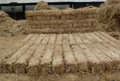 稻夫草支墊包括上表面呈凹形的墊體和用于捆扎墊體的捆扎帶,所述 墊體包括鋸末層,秸稈層以及稻草層,所述秸稈層包裹在鋸末層外側,所 述稻草層包裹在秸稈層外側,所述墊體外表面設有貼面。