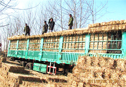 臥裝卷鋼既使用凹形草支墊或 者稻草掩擋加固