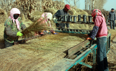 高臺縣引導(dǎo)農(nóng)民購買草簾編織機(jī),推進(jìn)稻草編織產(chǎn)業(yè)化,使溫室蔬菜安全越冬。圖為南華鎮(zhèn)成號村農(nóng)民正在編織草簾。