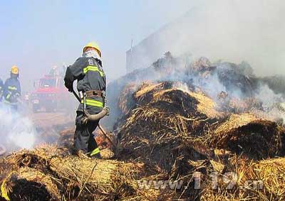 消防官兵到達(dá)現(xiàn)場后。經(jīng)火情偵察發(fā)現(xiàn),燃燒物是一草簾堆垛起火,火勢處于發(fā)展階段,南側(cè)民房受到火勢威脅。根據(jù)火場情況,消防指揮員立即下令:一班東風(fēng)水罐車出一支水槍從火場的東側(cè)利用直流水槍對著火部位射水,及時(shí)阻止火勢的蔓延發(fā)展;二號車組織為一號車供水。經(jīng)過近1小時(shí)30分鐘的緊張撲救,大火于16時(shí)20分被徹底的撲滅,確保完全熄滅沒復(fù)燃的可能,消防官兵才撤離現(xiàn)場。