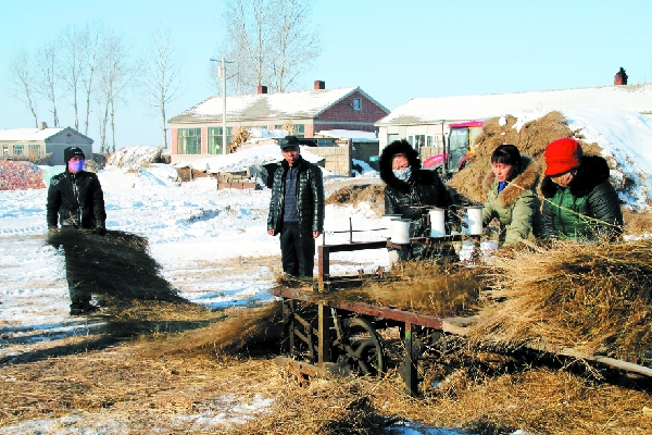 做了20多年打草簾子生意,高吉祥第一次做了賠本買賣。“明年我們村里要硬化路面,我一想這事自己能出力,這幾天家里人就都來(lái)幫忙打草簾子,多點(diǎn)準(zhǔn)備著用的時(shí)候方便。”近日,記者到高吉祥家采訪時(shí)一家人正忙得不可開交。噠噠噠噠……只見機(jī)器的一頭兒干草進(jìn)入后,幾個(gè)線輥不停飛轉(zhuǎn),不到兩分鐘扎實(shí)的草簾子就被整齊地“吐”了出來(lái)。“給村里做的都是四道莖的簾子,結(jié)實(shí)耐用,質(zhì)量我親自把關(guān)。這么多年大伙都特別照顧我,我也想為父老鄉(xiāng)親們做點(diǎn)事。村里美起來(lái)我個(gè)人虧點(diǎn)不算啥。”據(jù)高吉祥講,原料從30里外運(yùn)回來(lái),一天一車可以打1000多片草簾子。據(jù)估算,高吉祥所做的草簾子為村里節(jié)省資金至少5萬(wàn)元。