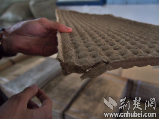 湖北世昌科技發(fā)展有限公司除了生產(chǎn)生物蛋白飼料,還有一種“尖板眼”——生物質(zhì)稻草水稻環(huán)保育秧盤。負(fù)責(zé)人易超掰開一張育秧盤介紹,相比傳統(tǒng)的塑料育秧盤污染環(huán)境,他們用稻草做成的育秧盤絕對綠色無污染。原來,這種育秧盤是用95%的稻草加上泥土生物菌制成,一整套工藝技術(shù)都已經(jīng)申請了專利,一條生產(chǎn)線一年就需要1.5萬噸稻草。對于這種綠色產(chǎn)品,易超很看好它的市場前景,還打算推廣到其它地區(qū)去。