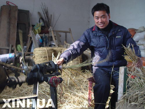 新華網(wǎng)山東頻道11月29日電(劉科玲) “俺編織草繩一天下來能收入150多塊錢,比外出打工強(qiáng)多了。再說,咱這地方屬于水稻產(chǎn)區(qū),稻草資源豐富,不用花錢買,過去村里村外推積如山的稻谷草大多是燒火做飯用,現(xiàn)在通過小小草繩編織機(jī)一撮合就變成了‘金鎖鏈’。”山東省郯城縣紅花鎮(zhèn)徐林村黨支部書記徐勤宗搖著稻草繩編織機(jī)有感而發(fā)。在徐勤宗的帶動(dòng)影響下,目前,該村基本形成了冬閑人不閑,戶戶有作坊,人人忙編織,天天增收入的可喜局面。