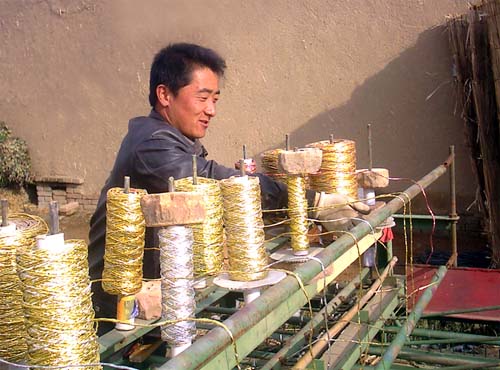 10月30日,涼州區(qū)張義鎮(zhèn)河灣村農(nóng)民謝凱正在草簾編織機(jī)上裝線的情景。今年春天,謝凱花了1萬(wàn)多元從內(nèi)蒙古購(gòu)置了草簾編織機(jī),幾個(gè)月來(lái)他編制的草簾為當(dāng)?shù)剞r(nóng)民搭建日光溫室提供了便利。