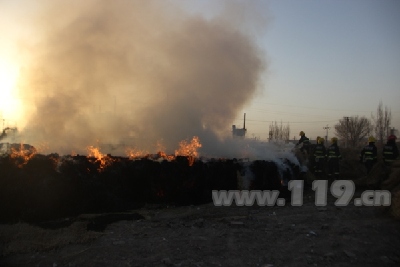 20時(shí)13分,消防官兵到達(dá)現(xiàn)場發(fā)現(xiàn),著火物為成卷的草簾堆過火,由于是在露天堆放,300多噸的草簾堆過火面積已達(dá)到30多平方米,如果不及時(shí)堵截,剩下一大部分也難以保存,且下風(fēng)放下均為大量居民住房,如果發(fā)生大風(fēng),火借風(fēng)勢,后果不堪設(shè)想。