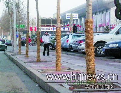 8日小編看到,整條黃河路上每隔一段就能看見纏著草繩的小樹,視覺(jué)上原本整齊的行道樹變得很不規(guī)整。在華山北路、沿河路等街路,也均可看到纏著草繩的楊樹。走訪中小編發(fā)現(xiàn),只有南崗區(qū)的街路行道樹上纏著草繩,粗略計(jì)算,這樣的樹約有幾百棵,以楊樹居多。“只纏了這么一段,像穿件馬甲一樣,其余部分不還是露在外面嗎?再說(shuō),這些本土樹種還需保暖嗎?太不美觀了。”家住黃河路的張經(jīng)理表示。對(duì)此,南崗區(qū)園林局有關(guān)人員表示,扎草繩的樹木都是新補(bǔ)植的。“此舉在給樹木保暖的同時(shí)也方便管理,一打眼兒就可以看清哪些樹木是新補(bǔ)植的。”據(jù)了解,該局今年計(jì)劃在黃河路、沿河路及花園街等100多條街路上補(bǔ)植3000余棵新樹,目前已經(jīng)有1000多棵樹木穿上了“棉衣”。
