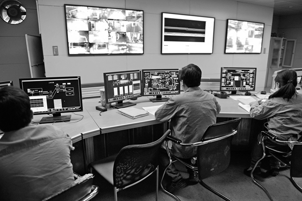 10月14日,淮南市凱迪綠色能源開發(fā)有限公司職工在集控室內(nèi)監(jiān)測草簾機組運行情況。今年以來,該生物草簾廠雙機雙爐滿負荷運行,共消耗各類稻草逾10萬噸。